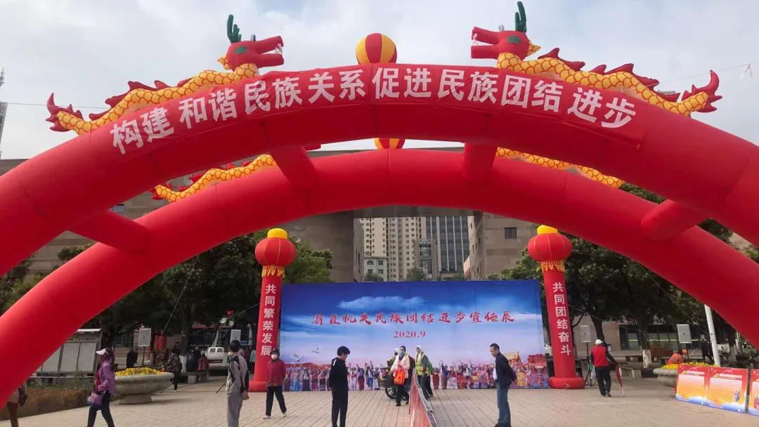宣传展高举民族团结旗帜,以“中华民族一家亲,同心共筑中国梦”为主题,分习近平民族观,青海民族团结进步创建概况、《中华人民共和国民族区域自治法》、《中国共产党统一战线工作条例(试行)》有关民族宗教工作的规定、《宗教事务条例》、《青海省促进民族团结进步条例》、省直机关/窗口服务行业创建成果6个部分,近200块展板图文并茂地展现了习近平总书记关于民族工作的重要论述、在中央第七次西藏工作座谈会上的讲话精神、对青海工作的重大要求、民族宗教相关法律在青海的施行情况及各单位在促进民族团结、服务民族地区、助力脱贫攻坚等方面的有益做法。参展的各单位青年、巾帼志愿者向各族群众宣传解说民族团结进步知识,窗口服务单位还就各族群众长期关注的民生热点问题及出台的便民措施向群众进行详细解读,受到群众追捧。活动中共发放《青海省促进民族团结进步条例》读本等各类宣传资料2000余份。